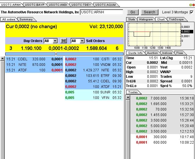 ARNH - ein schlafender Gigant - 17 Mio Assets und massiv unterbewertet !!! THE AUTOMOTIVE RESOURCE ISIN: US0533041010 Symbol: ARNH WKN: A1KBEW (geht bei CC nur telefonisch) Highlights: - Total Assets / Vermögen: 17,355,286$ - Marktbewertung von gerade mal 440.000$ !!! - ARNH will an die NYSE Alternext (AMEX) - nahezu Schuldenfrei (-73,540$) - CEO hält selber 75% der Aktien - Freefloat only 950 Million Shares - ARNH macht erstmals Gewinn in 2013 Gross profit +67,459$ - Gewinnerwartung 2013-2014 von mehr als 3-4 Mio. $ - Chart auf dem Tiefpunkt Price: 0,0001$ Target: 0,0013$ (Marketcap 5,6 Mio.$) Die Aktie von ARNH steht vor dem Rebound. THE AUTOMOTIVE RESOURCE ist eine Holdinggesellschaft die sich auf das Beteiligen von Small und Mid Cap Unternehmen spezialisiert hat. Aufgrund der verzögerten Zahlen ist die Aktie auf ihr Allzeittief bei 0,0001$ gefallen. Die fehlenden Zahlen wurden nun endlich letzten Monat nachgereicht und der 3 Phasen Plan des CEO trägt erste Früchte. Durch das starke Wachstum in diesem Jahr, konnte die Firma erstmals schwarze Zahlen in 2013 vermelden. ARNH konnte alleine dieses Jahr ihr Portfolio um mehr als 5 Mio. Dollar steigern und so Ihre Assets auf über 17 Mio. Dollar ausweiten. Aktuell startet die Aktie gerade den Rebound. Alleine die Tatsache das ARNH in 2014 das Börsensegment zur AMEX wechseln möchte, wird den Kurs antreiben. Durch die damit verbundene Transparenz möchte ARNH zu einem der führenden Unternehmen dieses Multi Milliarden Segments werden. Total Assets / Vermögen: 17,355,286$ Total Liabilities / Schulden: 73,540$ Cash: 101,237$ Gross profit: 67,459$ www.covenantalliancegroup.net Share Structure Market Value1 $428,868 a/o Oct 14, 2013 Shares Outstanding 4,288,680,197 a/o Aug 22, 2013 Authorized Shares 4,850,000,000 a/o Mar 31, 2013 Beneficial Shareholders: Kathleen Roberton Three Billion Common shares (75%) |