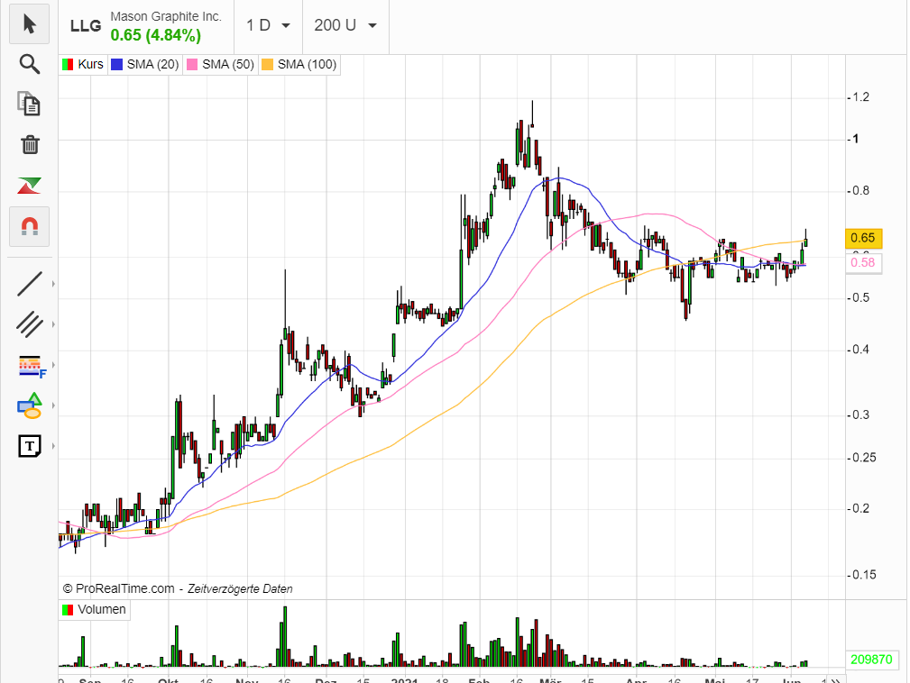 Zitat: "Ebenfalls ein ernstzunehmender Mitbewerber auf dem kanadischen Graphitsektor ist Mason Graphite aus Laval (Québec). Das Unternehmen evaluiert und exploriert das Graphit-Projekt „Lac Guéret“ im nordöstlichen Québec, ein mehr als 116 Quadratkilometer großes Areal mit ausgezeichneter Anbindung an das Straßenverkehrsnetz. Das Unternehmensmanagement charakterisiert es auf der Firmenwebsite als „eines der hochwertigsten Graphitvorkommen weltweit“. Manson Graphite plant, einer der kostengünstigsten Produzenten zu werden.