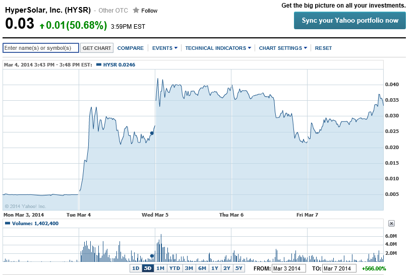 One oddball company brought to my attention by a reader is HyperSolar, Inc (OTC:HYSR). Hypersolar is a very early stage developer of a solar powered system to directly use solar power to produce hydrogen from water. While cutting out the extra step of converting sunlight to electricity with photovoltaics before using electrolysis to split hydrogen from water may sound attractive, the company is at an extremely early development stage and does not have sufficient funding to advance its technology. It's also not clear if the technology is more efficient at converting sunlight to hydrogen than the combination of photovoltaics and electrolyzers would be, or what the capital costs are. I can't imagine any scenario where a long term stock market investor could make a profit on HyperSolar.