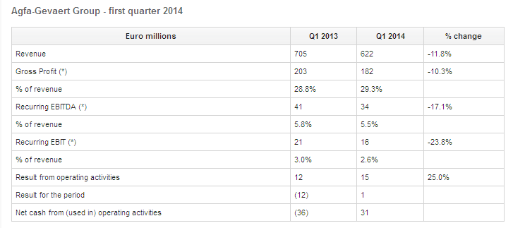 Agfa -Gevaert sagte am Dienstag, es seine Margen verbessert hatte und ein positives Nettoergebnis im ersten Quartal trotz des starken Euro und Schwäche in den Schwellenländern.