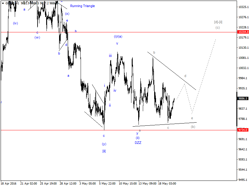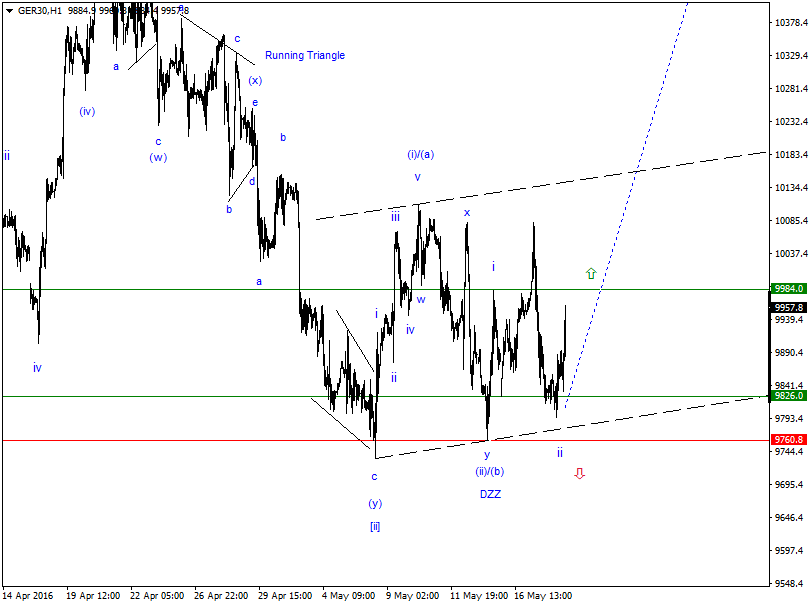 Alternative (graue Farbe) entwickelt sich langsam zu Hauptszenario in dem die Welle (i) or (a) noch nicht fertig bzw. Komplett ist. Angenommen Welle iv of (i)/(a) ein Dreieck wird, dann kommt es Höchstwahrscheinlich zu einem Ausbruch nach oben in den Bereich von 10223 Punkten +/-. Hauptszenario (blaue Farbe) von Gestern war so daß die Welle (i) or (a) sich fertig ausgebildet hat, und Erwartene Welle (II)/(b) sich möglichst als ein ZZ oder DZZ ausbildet. Beide Varianten sind noch Aktuell 50 zu 50. In 4 Stunden gibt es Momentan keine Veränderungen.