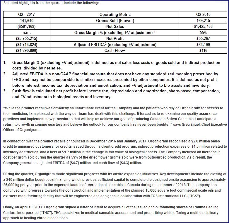 aus dem google-deutsch: Zitat:"Der Globe Grant Robertson schreibt, dass Mettrum und Organigram in den vergangenen zwei Monaten Botschaften an Kunden geschickt haben, die .........., dass Produkte, die sie gekauft hatten, wegen der Anwesenheit von verbotenen Pestiziden, darunter Myclobutanil, zurückgerufen wurden. Ein Brief an die Kunden von Mettrum sagte: "Seien Sie versichert, dass dieses Material kein Gesundheitsrisiko darstellt." Organigram informierte Klienten, ...... .......daß "die Wahrscheinlichkeit der ernsten nachteiligen Gesundheit Konsequenzen fern ist", während Gesundheit Kanada auf die Mengen des verbotenen Pestizids verwiesen hat, die als "Spurenmengen", die "niedriges Risiko" sind, gekennzeichnet sind. Dr. Porter sagt: "Ultra-niedrige Dosen können alle Arten von biologischen Effekten haben, vor allem über längere Zeit der Exposition.So wenn diese Unternehmen sagen 'Oh, es gibt kein Problem', das erste, was ich fragen würde, haben Sie sich angesehen Die Auswirkungen auf das Nervensystem, das endokrine System, das Immunsystem und die ....... " ENDE Zitat Source:http://www.stockwatch.com/News/...2443267&symbol=OGI®ion=C