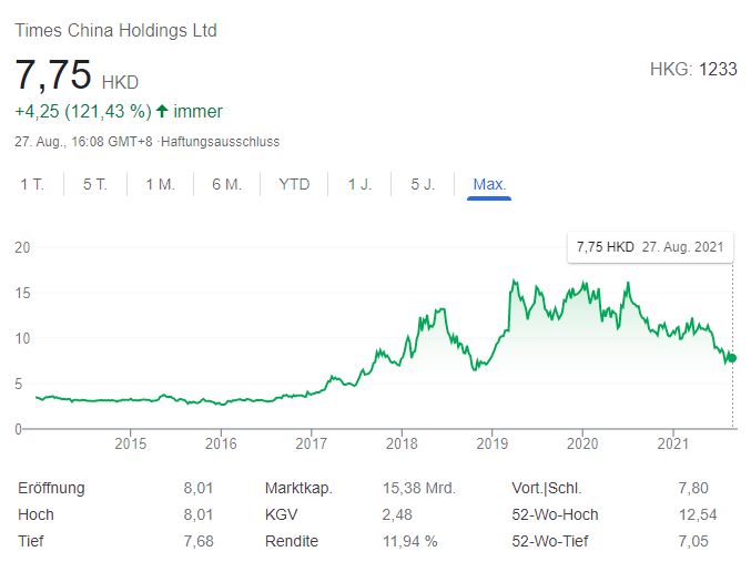 Speziell bei Times China sehe ich allerdings den Vorteil, daß das Unternehmen nicht in Hongkong (hier ein kritischer Bericht dazu), sondern auf dem Festland sitzt und zudem in einem Markt agiert, der offenkundig eh längst reguliert ist. Nochmal: Daß ausgerechnet eine kommunistische Staatsmacht wie die chinesische nicht gewillt ist, eine Immobilienblase zu tolerieren, empfinde ich (mindestens) als nachvollziehbar. Immerhin wurde auch in Berlin schon über Regulierungen nachgedacht, aber in einer privatwirtschaftlich orientierten Verfassungsdemokratie hat man diesbezüglich naturgemäß deutlich weniger Handlungspielraum...