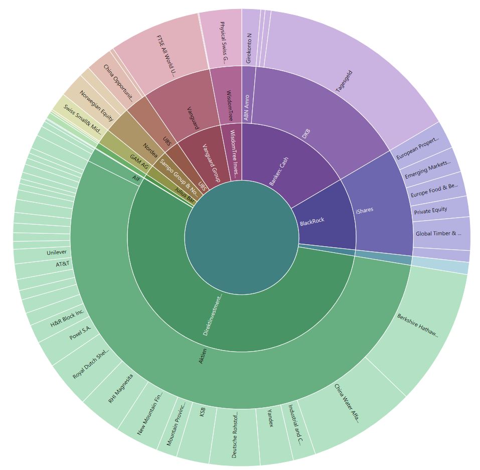 Hier sieht man deutlich, wie wenig es die Gesamtvermögenseiche kratzen wird, wenn selbst Werte wie Nestlé oder Microsoft tatsächlich mal wider Erwarten abschmieren oder gar eingehen sollten. Bei den Einzelaktien schaut das schon anders aus und falls mal eine Weltkriegsbombe unter einer meiner ETWs hochgehen sollte, bin ich auch angeschmiert.