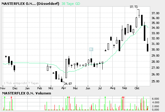 Auf der Homepage wird ab morgen sicher der ganze Bericht nachzulesen sein. Ich persönlich sehe Masterflex als echte "Zukunftsaktie" und werde morgen (Exdividendentag) noch mal nachlegen bevor sie Step by Step auf die € 40.- geht. Für mich eine Langfristanlage. Ich hoffe, das reicht Dir für`s erste. Grüße vom