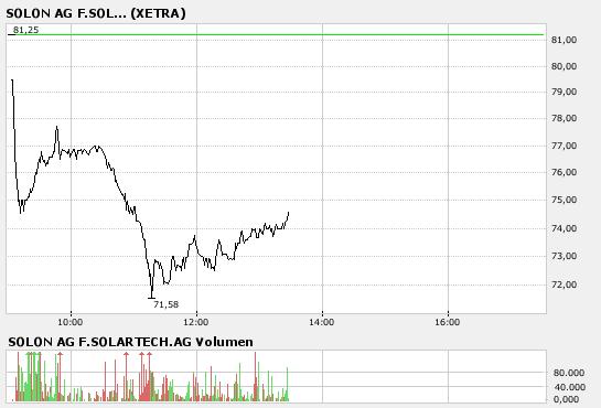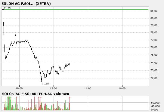 -------------------------------------------------- Sprache: Deutsch Emittent: SOLON AG für Solartechnik Ederstraße 16 12059 Berlin Deutschland Telefon: +49 (0)30 81 87 9-100 Fax: +49 (0)30 81 87 9-110 E-mail: investor@solonag.com Internet: www.solonag.com ISIN: DE0007471195, DE000A0DRXN1, WKN: 747119, A0DRXN, Indizes: TecDAX Börsen: Regulierter Markt in Berlin, Frankfurt (General Standard); Freiverkehr in München, Hamburg, Düsseldorf, Stuttgart Ende der Mitteilung DGAP News-Service |
