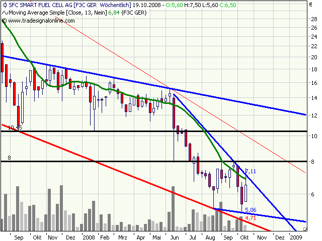 Auf der Ergebnisseite seien im zweiten Halbjahr 2008 zwei Sondereffekte zu erwarten. Erstens sollte SFC das im Wettbewerb gemeinsam mit den Partnern gewonnene Preisgeld (vor Kosten insgesamt USD 1,25 Mio.) im vierten Quartal als außerordentlichen Ertrag buchen (erwartet EUR 0,3 Mio.). Zum anderen habe sich der Platin-Preis in den vergangenen Monaten ausgehend von den Höchstständen über USD 2.000 mehr als halbiert.