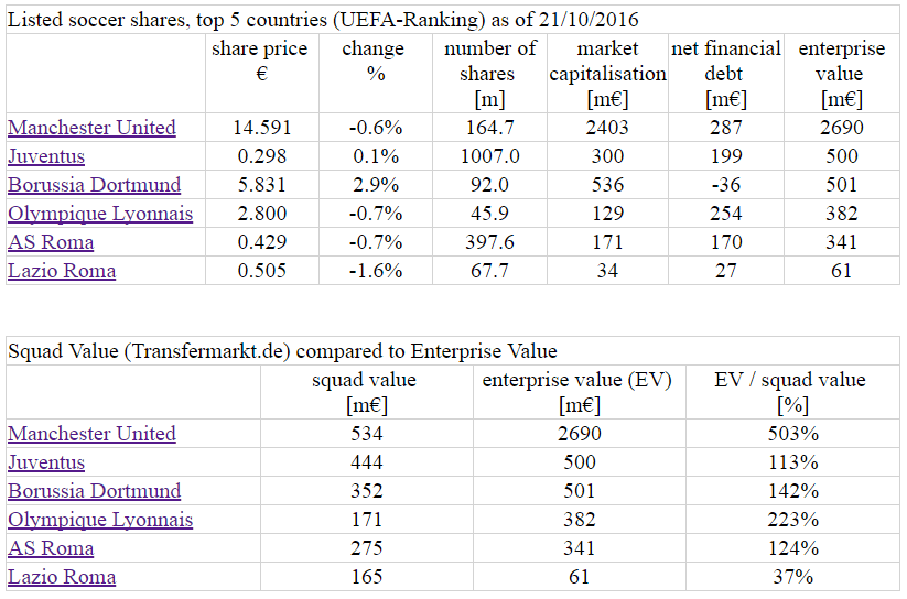 in der Tabelle sieht man auch dass der BVB erstmals Juve vorbei ist .. nun der zweit teuerste Verein an der Börse ist
