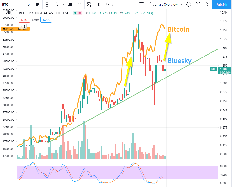 Further to Bluesky's press release of January 20th of this year, regarding the purchase of $500,000 CDN worth of new mining hardware acquired internationally through Bluesky's well established supply chain relationships in Asia, Bluesky is pleased to announce that it has met its commitments to use its shareholder and investor capital prudently and it has acted in a prompt manner to rapidly grow its active mining operations and to immediately monetize upon the currently positive trending crypto marketplace.