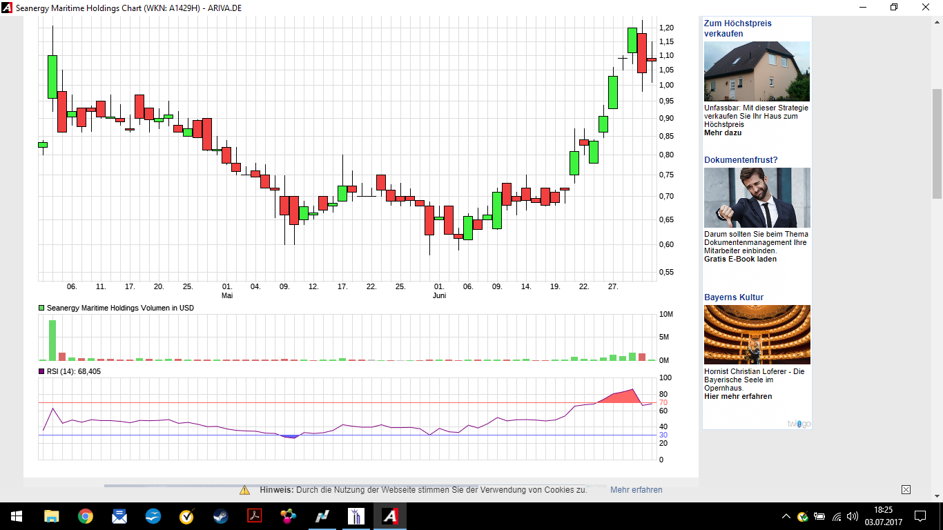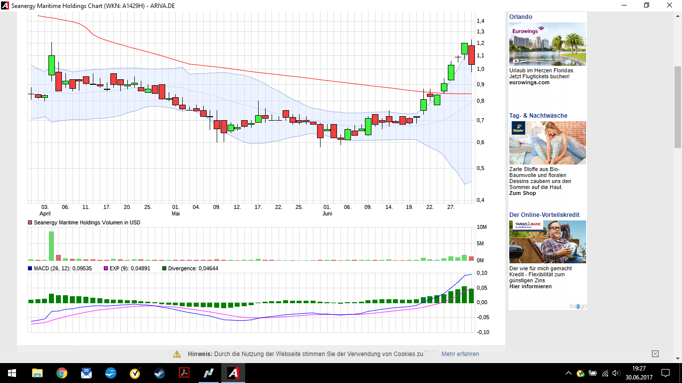 Man beachte den geringen Aktienfloat da geht es auch mal schnell nach oben. Dadurch das Freitag die 1$ gehalten worden ist, sollte das Vertrauen der Anlegen schnell zurück kommen. Denn wenn man das Chartbild genau Analysiert ist der Aufwärtstrend unverkennbar |
