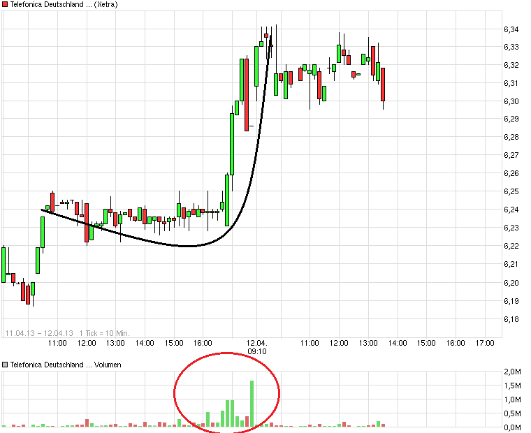 Naja, die eine Minute ;) Manche Nachrichtenagenturen kommen erst jetzt damit daus. Wobei die News aber auch schon gestern zu sehen war. Der Artikel in der FT kam ja gestern am späten Nachmittag (MEZ) raus ( => April 11, 2013 Telefónica eyes German tie-up with KPN http://www.ft.com/cms/s/0/4bc112e0-a20b-11e2-ad0c-00144feabdc0.html#axzz2QFRHmPLt )