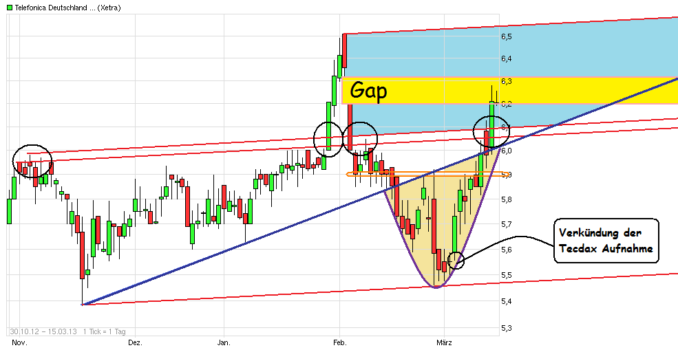 Der Bereich 5,90/6,00 scheint sich ja als Unterstützung zu etablieren. Die Aktie ist heute auch bislang wieder unter den stärksten im TecDax. Mal schauen was da noch geht. Hängt natürlich mit davon ab was an den Gesamtmärkten jetzt noch passiert bzw. wie weit/tief die laufende Korrektur da noch geht. Sollte sich über das Wochenende eine zufriendenstellede Lösung für Zypern ergeben, dann kommt man vielleicht schon kommenden Woche auf die Idee die Korrektur als beendet anzusehen und nach der Verschaufpause das ATH im DAX wieder anzusteuern. Sollte Zypern wider erwarten doch die Staatpleite bevorzugen, dann könnte nächste Wochen nochmal etwas gerüttelt werden. Wobei selbst da die Rückschlagsgefahr überschaubar wäre, da einfach zuviel Geld noch immer in die Aktienmärkte will und Alternativen bei Rentenpapieren einfach nicht lukrativ sind. Also schauen wir mal was die kommenden Tage passiert.