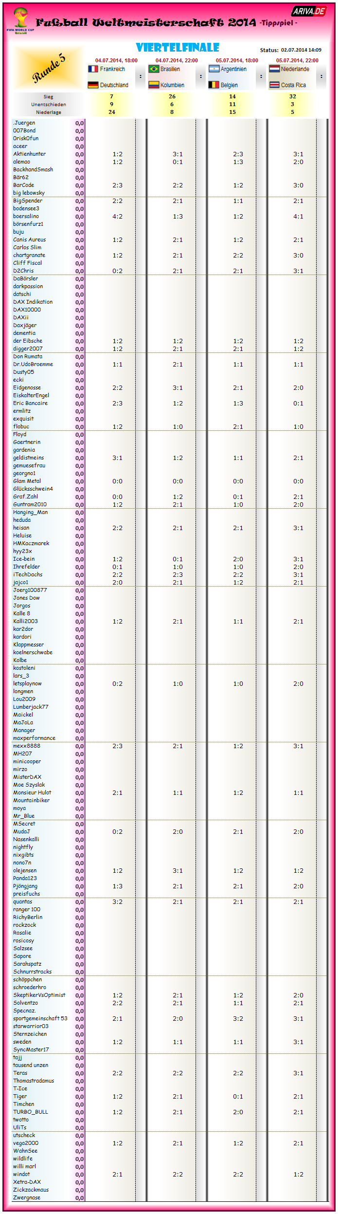 Tippspiel WM2014, Viertelfinale