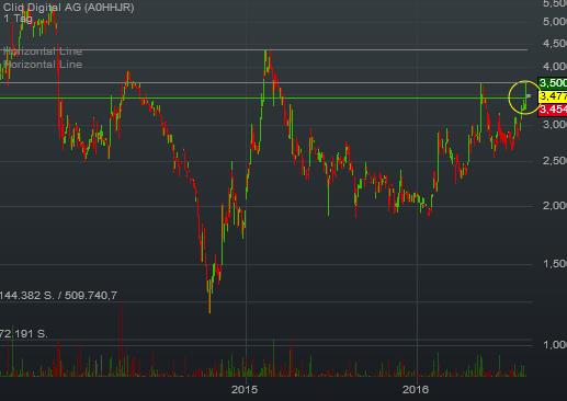 Auch User wie Berlintrade und Piquest sind sehr bereichernd. Man merkt, dass immer mehr User die Aktie Cliq Digital entdecken. Ich hatte ja Cliq Digital Anfang des Jahres als Toppick im Thread vom Kleinen Chef auf wallstreet-online vorgeschlagen. Mancher hätte sich nun gewünscht, dem gefolgt zu sein. Aus meiner Sicht sollte die Aktie bis Ende 2016 bei mindestens 5€ stehen. Also noch viel Potential.