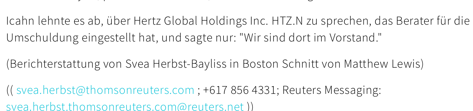 Ja, Hertz hat 17 Milliarden Schulden, aber auch eine Milliarde Barreserven und Sachwerte, macht zusammen ca 10 Milliarden Schulden. Das ist sehr viel, man muß sich aber auch anschauen, woher die Schulden kommen. Vor einigen Jahren wurde die Unternehmensgruppe Dollar/Thrifty (auch Autovermieter) für mehrere Milliarden gekauft, diese Firmen sind an Flughäfen besonders stark und haben daher jetzt besonders große Probleme. Fängt das Fluggeschäft wieder an, sind hier aber auch die größten Synergien und Gewinne.