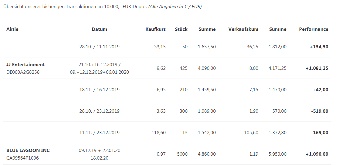 09.+12.12.2019+06.01.2020§Kauf 9,62 Euro 425 4.090,00 Verkauf 8,00 4.171,25 +1.081,25Gewinn