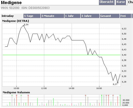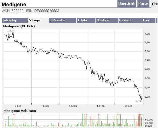 Die starken Umsätze der letzten Tage liessen bei der Masse von Medigene anlegern schlimmes vermuten (Fehlschlagen Phase II ..., Insolvenz... Kapitalverzehr...)