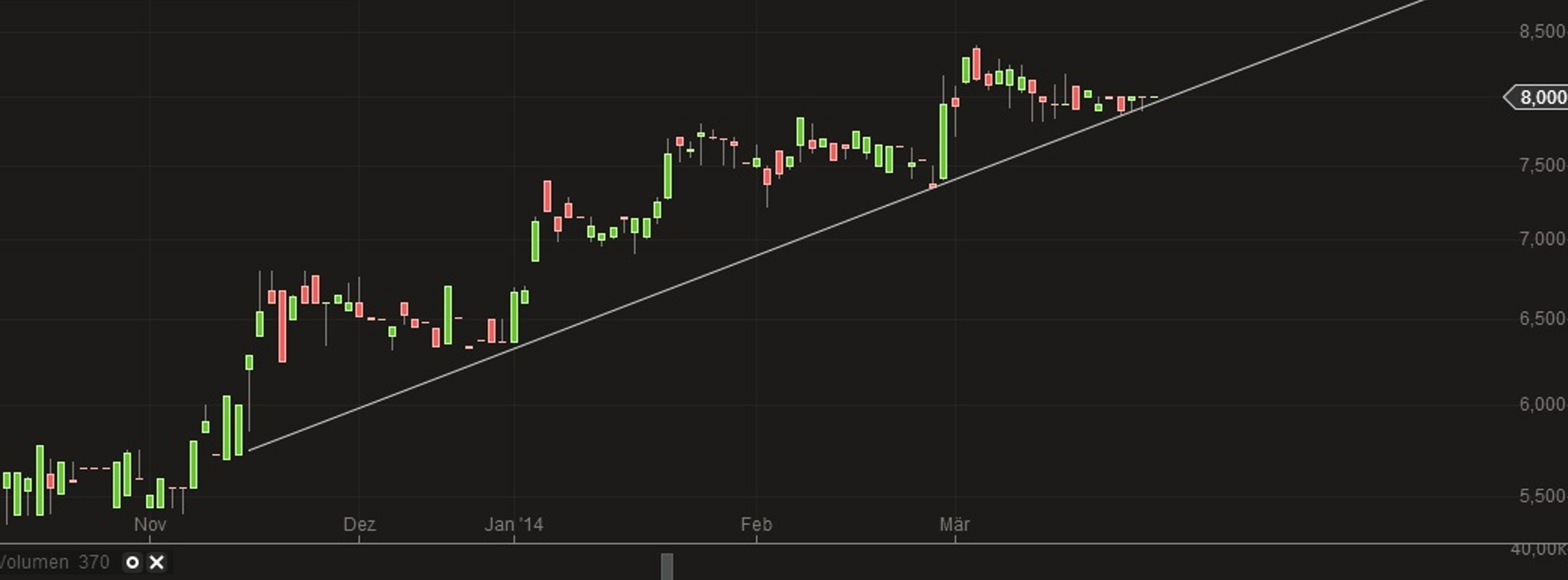 interessanter ist da schon ein Blick auf die Indikatoren und gleitenden DS, die an/auf ähnlichen Niveaus wieder nach oben drehten. Insofern kann es tatsächlich bald wieder hoch gehen. Aber die Trendlinie ist mir etwas zu ungenau und dürfte auch keine mittelfristige Bedeutung haben. Dafür ist sie auch einfach zu steil.
