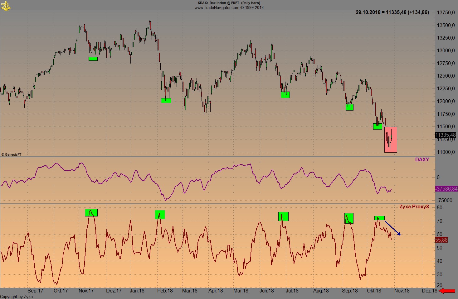 Er zeigt meinen geliebten Proxy und einen neuen, den YEN/DAX Spread.