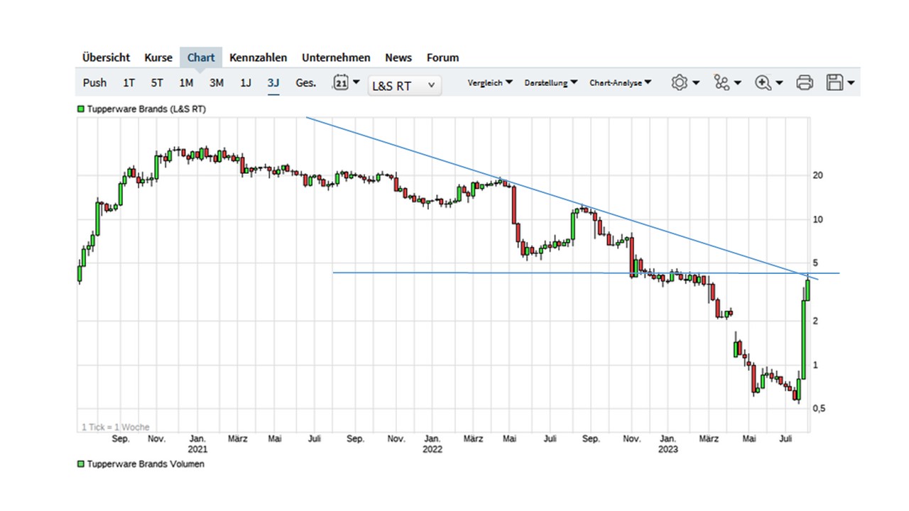 Die Aktie von Tupperware Brands boomt: Lernen Sie von GME und meiden Sie Der Aktienkurs von Tupperware Brands ( NYSE: TUP ) ist in den letzten Wochen stark gestiegen, da ein Short-Squeeze Gestalt annimmt. Die Aktien stiegen am Montag auf ein Hoch von 4,7 US-Dollar, den höchsten Stand seit Januar. Bemerkenswert ist, dass die Aktie vom Tiefststand in diesem Jahr um mehr als 632 % gestiegen ist.