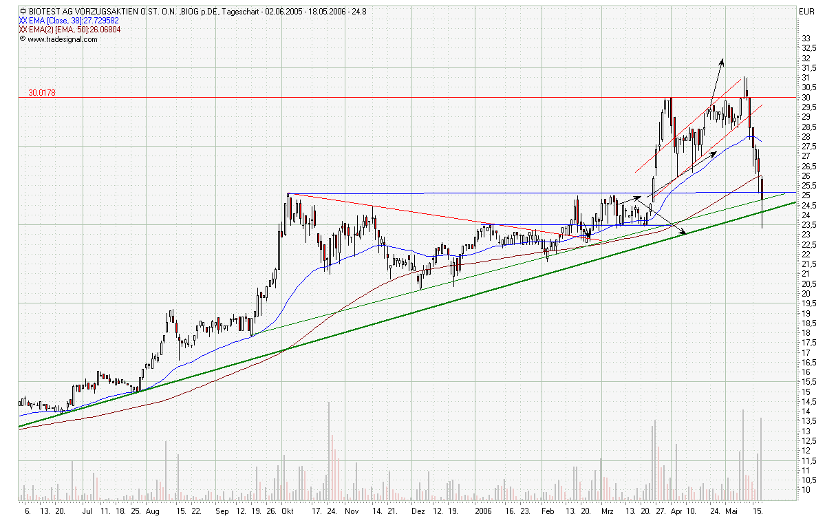 DGAP 11.05.2006 --------------------------------------------------Sprache: DeutschEmittent: Biotest AG Landsteinerstr. 5 63303 Dreieich DeutschlandTelefon: +49 - 6103 / 801 - 0Fax: +49 - 6103 / 801 - 150Email: mail@biotest.deWWW: www.biotest.deISIN: DE0005227201, DE0005227235WKN: 522720, 522723Indizes: Börsen: Amtlicher Markt in Frankfurt (Prime Standard); Freiverkehr in Berlin-Bremen, Düsseldorf, Hamburg, StuttgartEnde der Mitteilung DGAP News-Service--------------------------------------------------