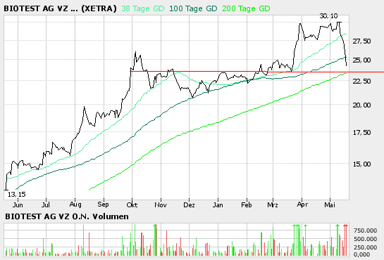 Die Experten der "Prior Börse" sehen für die Biotest-Aktie (ISIN DE0005227201/ WKN 522720) ein Kursziel von 50 EUR.