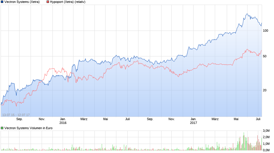 Nämlich, warum die Analysten bei der Verfünffachung von Hypoport nicht rechtzeitig darauf hingewiesen hatten und immer nur ein Potential von weiteren 10-30% erkannt hatten. Bei 28 Euro nannte Hauck & Aufhäuser bei Vectron aber ein Kursziel von 100 Euro. Dieses Kursziel wurde erreicht, die Spekulation darüber war letztlich erst mal ziemlich einfach, das gigantische Wachstumspotential wurde durch die neue Gesetzeslage, die so im Koalitionsvertrag beschlossen wurde, die man also sehr gut antizipieren konnte, ermöglicht.
