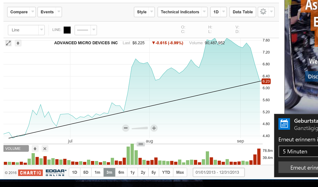 Und bei seinen Überlegungen muss man einfach bedenken, wo AMD noch im Februar stand - ich kann es selber kaum glauben, dass es tatsächlich in einem Rutsch bis 8$ (!!!) ging. Und je schneller und höher es nach oben ging, desto heftiger fällt i.d.R die Korrektur aus.