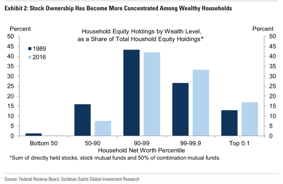 Zumindest für 50 % der Bürger stimmt das nicht. Die halten quasi 0 (Null) % der Aktien und Fonds. 90 % der Bürger kommen zusammen auf ungefähr 7 %, während das Top-Promille (0.1 %) 17 % hält, und das oberste Prozent sogar über 50 %.