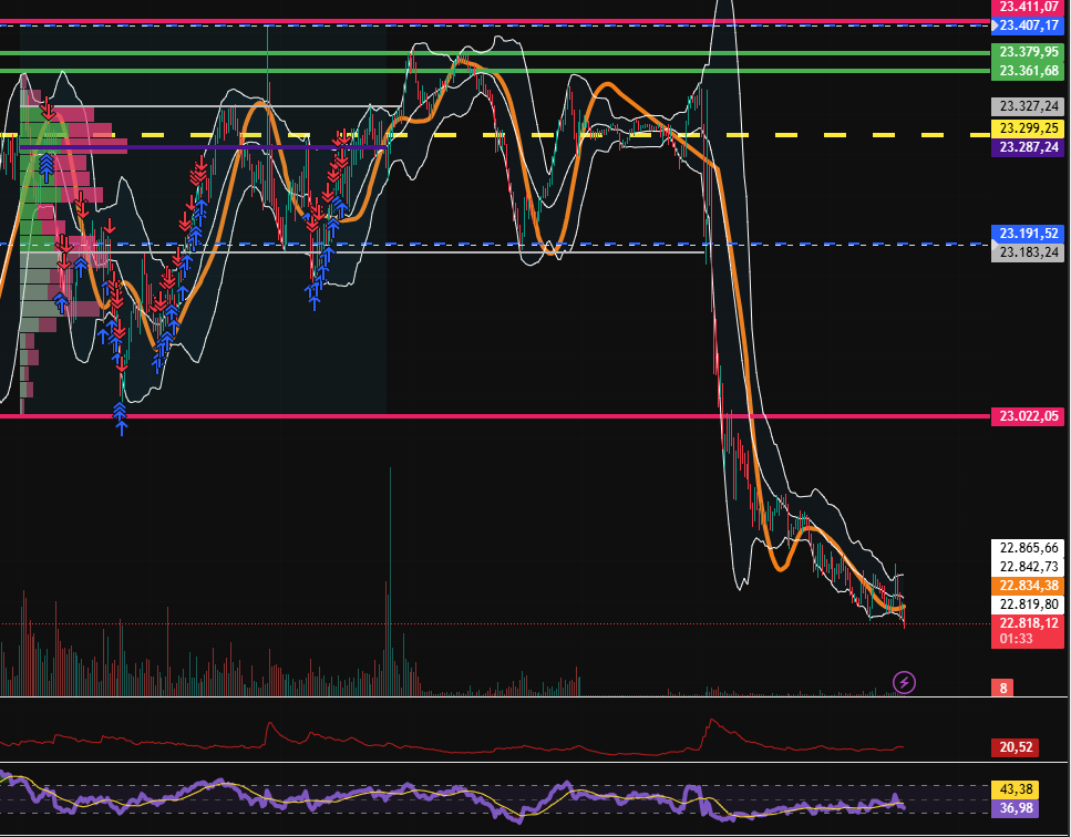 wir handeln aktuell rund 400 Punkte unter VAL extrem billig aus dem Gleichgewicht. Da muss man aufpassen, das kann auch schnell einen Rücklaufen geben. Spannend also heute genau zum Börsenstart 9 Uhr schauen.....zumal wir mit einem 500 Punkte GAP down weit aus den BB im 30er starten!