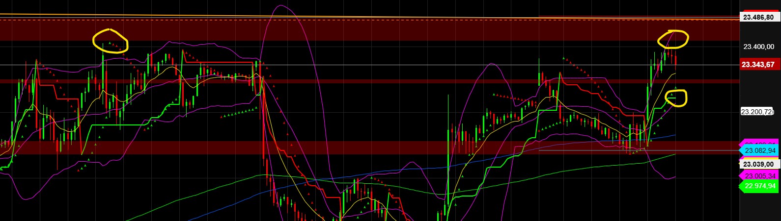 Widerstände: 23.300 / 23.400 / 23.500 Punkte