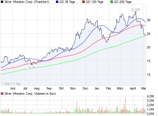 Den Anfang macht Silver WHEATON (WKN: A0DPA9; ISIN: CA8283361076; Symbol: SLW), der größte Silver-Streamer Welt-weit: