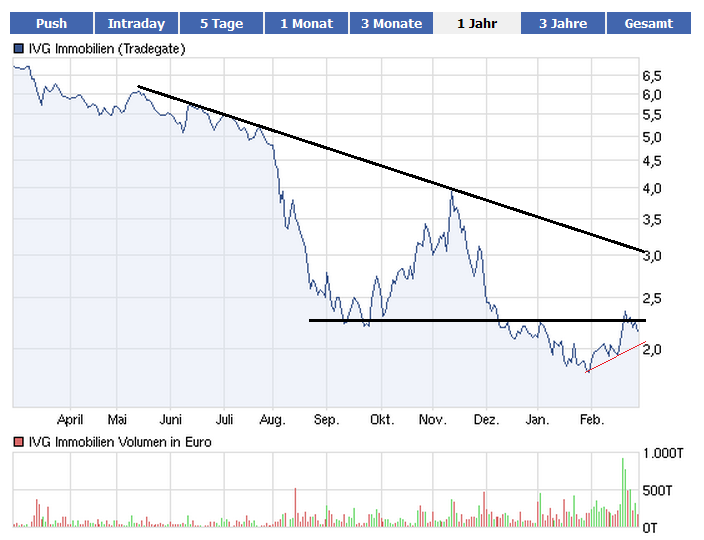Zu der unteren schwarzen Linie vom Kugelfrosch möcht ich auch wieder sagen, ich seh nicht, wo horizontale Marken bei dem Verlauf bisher je eine Rolle gespielt hätten, mir leuchtet auch nicht ein, was diese hier für eine Rolle haben sollte. Der Abschwung im Dezember hat wohlgemerkt sofort einen Boden weiter unten gesucht ohne lange eine Unterstützung zu testen. Also alles in allem seh ich nur Gefälle, keine Waagrechten.