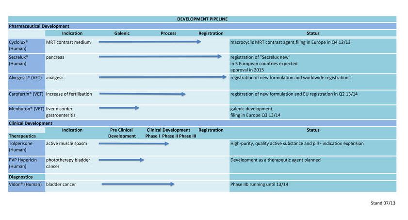 Spannung verspricht die Partnersuche bei einem innovativen Blasenkrebskontrastmittel, das derzeit in einer Phase IIb Studie an Patienten getestet wird. Gespräche dazu sind bereits im Laufen, um die kapitalintensive Phase III gemeinsam anzugehen. Zuletzt wurde durch die Begebung einer Anleihe mit einem Volumen von zehn Millionen € der finanzielle Spielraum ausgebaut. Dadurch sind zwar die liquiden Mittel in den ersten Neun Monaten auf 5,75 Millionen € kräftig angestiegen. Die erste Kuponzahlung im August 2013 in Höhe von stolzen 7,75 Prozent dürften sich im Gesamtjahresergebnis allerdings in einem deutlich gesunkenen Finanzergebnis bemerkbar machen.