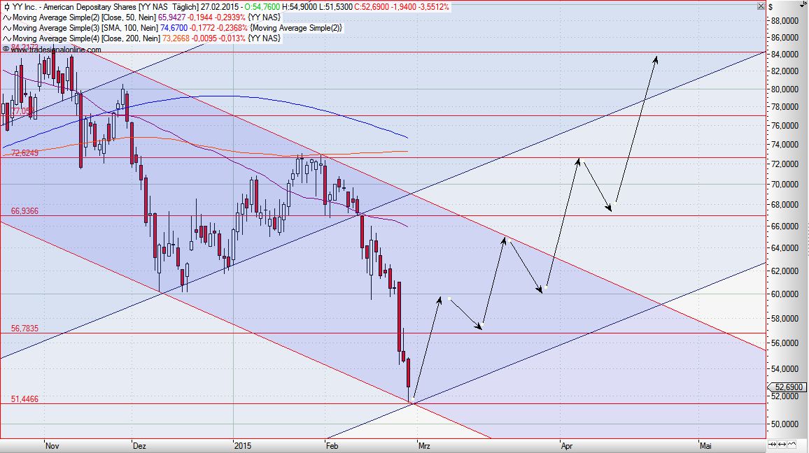 Danke für den grandiosen Chart, von 100 Charttechnikern, würden wohl 99 den weiteren Kursverlauf genauso sehen, es ist nur die Frage, ob der Kurs wirklich den untergeordneten Abwärtstrend-Kanal zur Oberseite verläßt, oder ob er nochmal abtaucht, um das Dezembertief 2013 von ca. 49$ zu testen,das wär dann auch gleichzeitig das verlassen des übergeordneten Aufwärtstrend-Kanals, was natürlich weitere Kursverluste bedeuten würde, denke ich aber, mit Blick auf die Zahlen am 5.3, eher nicht