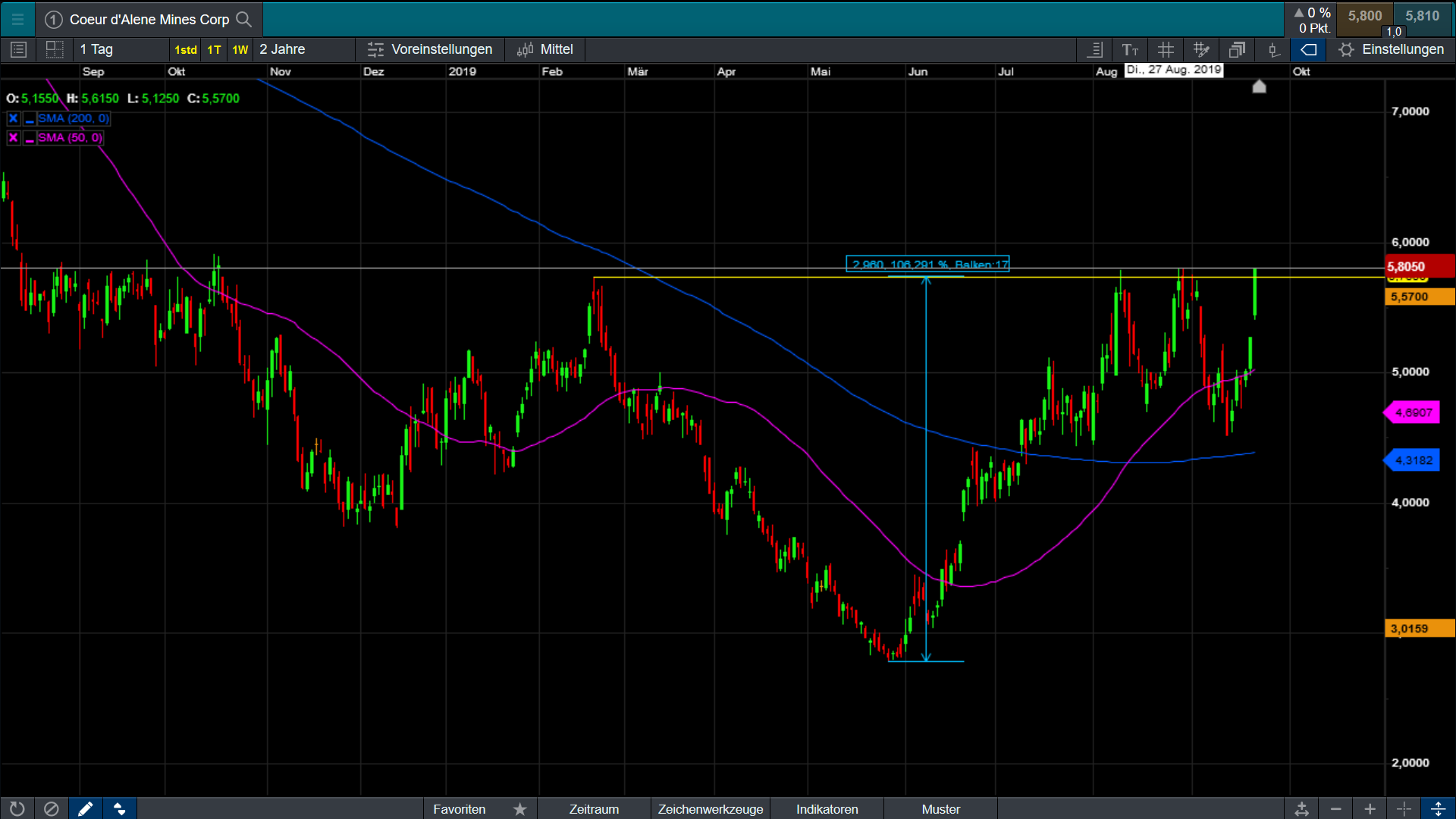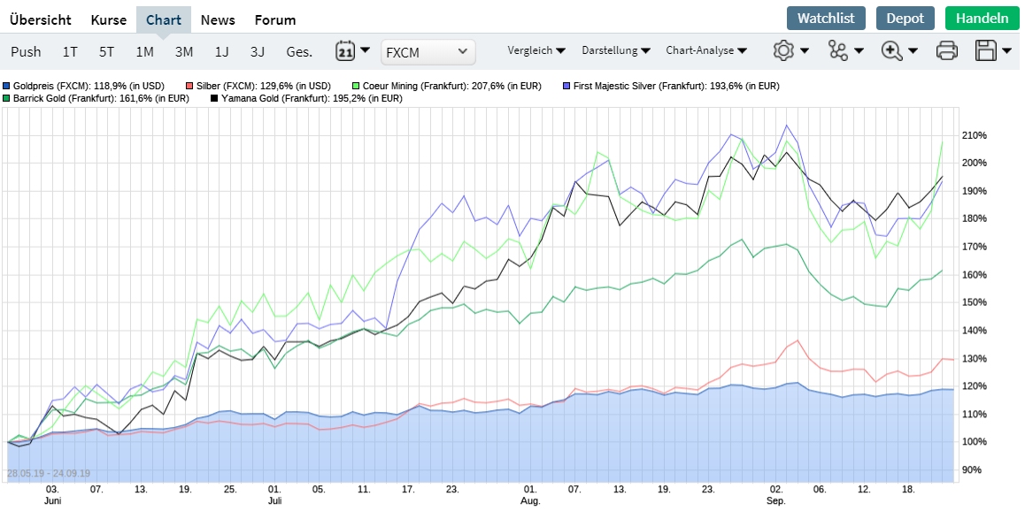 24.09.19 04:09 #307 Minen im Vergleich seit 28.5. - Coeur Mining .