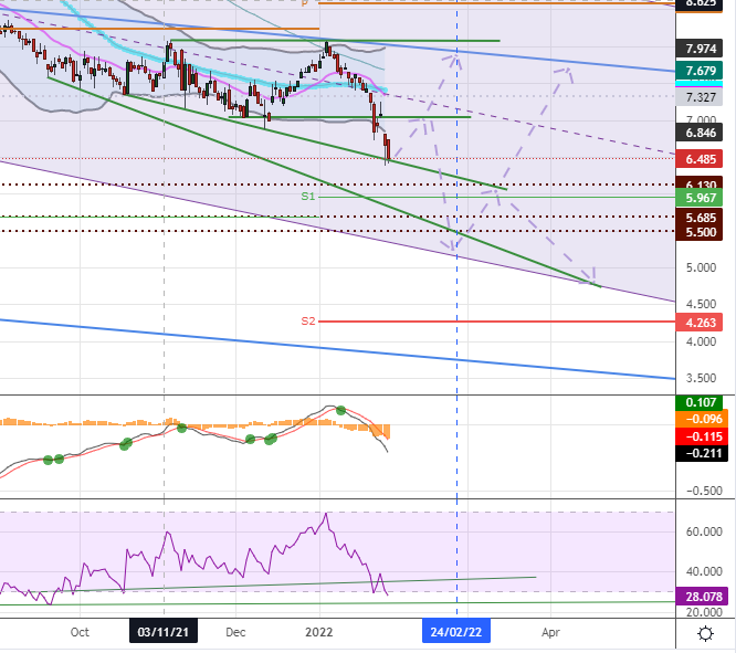 Entweder steigt und man sieht die ca. 8 wieder und dann sollte man profitieren zu reduzieren (ich denke es wäre 'ne weise Entscheidung).