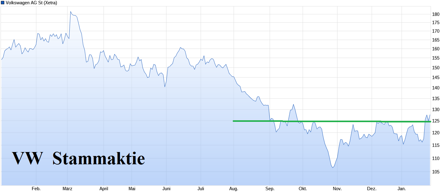 Die VW Stammaktie hat den kleinen Widerstand bei 125 € durchbrochen.
