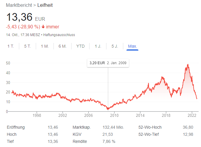 Ich persönlich würde aus diesen Gründen die Leifheit-Aktie derzeit nicht kaufen, wenn überhaupt bei einer weiteren Korrektur.