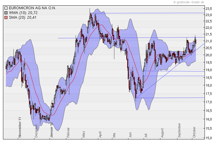 Der Wachstumskurs von euromicron hat sich im ersten Halbjahr eindrucksvoll fortgesetzt. Der Umsatzzuwachs lag hier bei annähernd 20 %. Ein Großteil des Wachstums ist auf die Übernahme von telent zurückzuführen, da die Gesellschaft im Juni 2011 erstmalig konsolidiert wurde. Die deutliche Umsatzausweitung ging einher mit einer leichten Verbesserung der EBITDA-Marge auf 9,0 %. Infolge der im vergangenen Jahr getätigten Übernahmen erhöhten sich die Abschreibungen um über 1,5 Mio. EUR auf 4,03 Mio. EUR. Wir sehen die euromicron AG auf einem guten Weg unsere Prognosen für das laufende Geschäftsjahr 2012 zu erreichen. Die Integration der telent GmbH verläuft nach unserer Einschätzung planmäßig. Wir erwarten daher unverändert einen Umsatzanstieg von 12,3 % auf 343,00 Mio. EUR sowie ein EBIT von 27,86 Mio. EUR. Damit liegt die EBIT-Marge innerhalb des vom Management angestrebten Korridors zwischen 8 und 11 %. Bis 2015 strebt das Management einen Umsatzanstieg auf 500 Mio. EUR an. Neben weiteren Akquisitionen sollte das Unternehmen von einer anhaltend hohen Investitionsbereitschaft von Netzbetreibern sowie öffentlichen und industriellen Kunden profitieren. Eine moderne Netzwerkinfrastruktur ist vor dem Hintergrund neuer Anwendungen, wie z. B. Cloud Computing, eHealth, Videostreaming-Dienste oder Smart-TV, unverzichtbar. Die derzeitige Bewertung der euromicron AG erscheint mit einem 2012er KGV von leicht über 8 sowie einem 2012er EV/EBITDA von unter 6 attraktiv. Zudem beläuft sich die erwartete Dividendenrendite auf rund 6 %. Im Rahmen unseres DCF-Modells haben wir ein unverändertes Kursziel in Höhe von 30,50 EUR für die Aktie der euromicron AG ermittelt. Ausgehend vom aktuellen Aktienkurs sehen wir folglich noch ein Kurspotenzial von rund 50 %. Damit bestätigen wir unsere Kaufempfehlung für die Aktie der euromicron AG. Die vollständige Analyse können Sie hier downloaden: http://www.more-ir.de/d/11719.pdf Quelle: GBC AG |