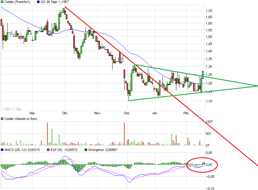 bei Catalis immer etwas vorsichtig. Es gab mal Zeiten, da war man noch halbwegs analysierbar. Aktuell versuch ich mal auf deinen Wunsch hin eine Chartanalyse, aber die sollte man wirklich unter Vorbehalt betrachten. Allein schon die Tatsache, dass diese Analyse mit einem Frankfurt-Chart möglich ist, aber der xetra-Chart anders aussehen würde, zeigt schon wie schwierig ernsthafte Rückschlüsse sind.