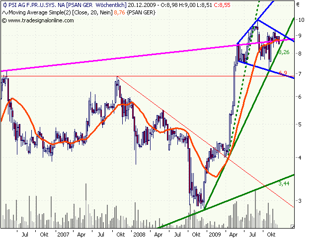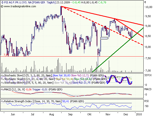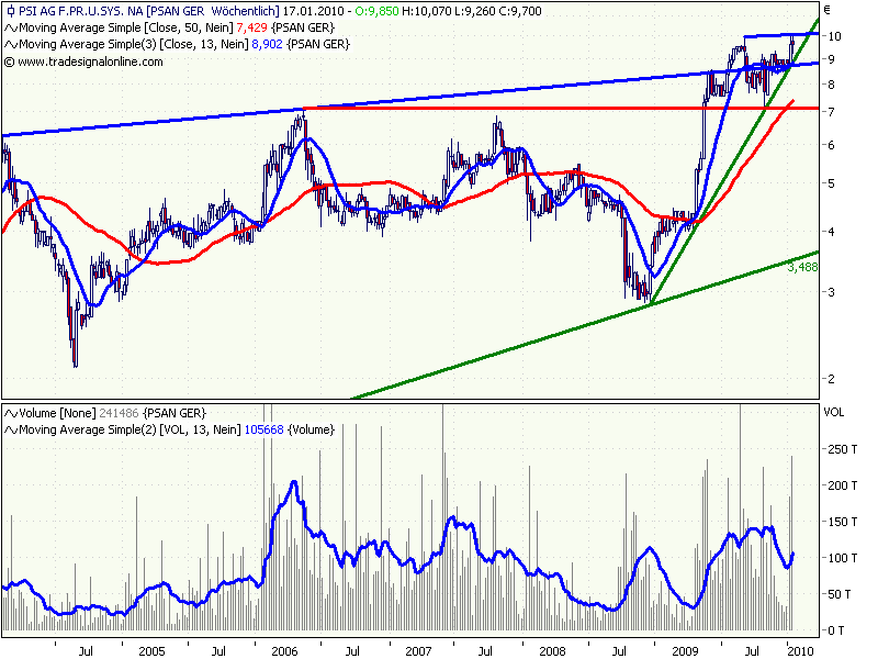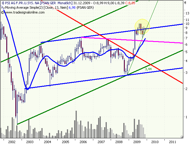 Wer auf die Interpretation der Börsenumsätze keinen Wert legt, lese einfach die Statistik der Deutschen Börse. Dabei wird man allerdings das Potential von PSI in Richtung TecDAX nicht erkennen. Die Forderung nach Verdopplung entbehrt seit den letzten sieben Monaten jeglicher Grundlage.