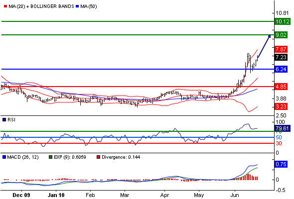 Unterstützung: 5.37 / 6.24 / 6.58 Widerstand: 8.47 / 9.02 / 9.58