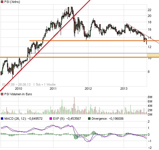 Es spielen zig Faktoren in die Kursfindung hinein, aber ich empfehle unbedingt, auf Quartalszahlen spontan mit Handelsaktivität zu reagieren. Dann stimmt auch der Turnover. Andere schauen sich vielleicht Ursache und Wirkung genauer an und treffen ihre Entscheidungen überlegter. Quartalsergebnisse sind wichtig, aber überbewertet. Wer sich jetzt zu PSI neu positionieren will, hat aber schon das Jahr 2014 auf dem Radar.