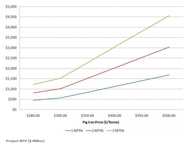 Ich glaube in der Scoping Studie wurde mit 1Miot das reine Metall angegeben, aus dem sich 2Miot pig iron ergeben. Das ansonsten zu hohe NPV wäre sonst sicher jemandem im Management aufgefallen. Ein Schreibfehler? Die pig iron Menge dagegen ist marginal zu dem was am Ende rauskommt, ein NPV von Heute 1,7MrdUS$, wen interessiert da schon so eine Kleinigkeit.