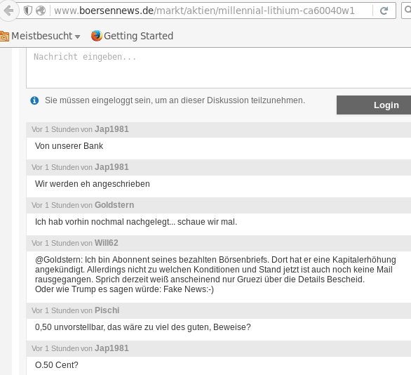 Seit Jahresbeginn veröffentlichte Millennial Lithium eine positive Mitteilung nach der anderen und die Aktie hat sich vom damaligen Tief auch bereits wieder deutlich entfernt. Wir sind aber der Ansicht, dass, sollte der Strom der positiven Neuigkeiten anhalten, die Aktie noch erhebliches Aufwärtspotenzial hat. |