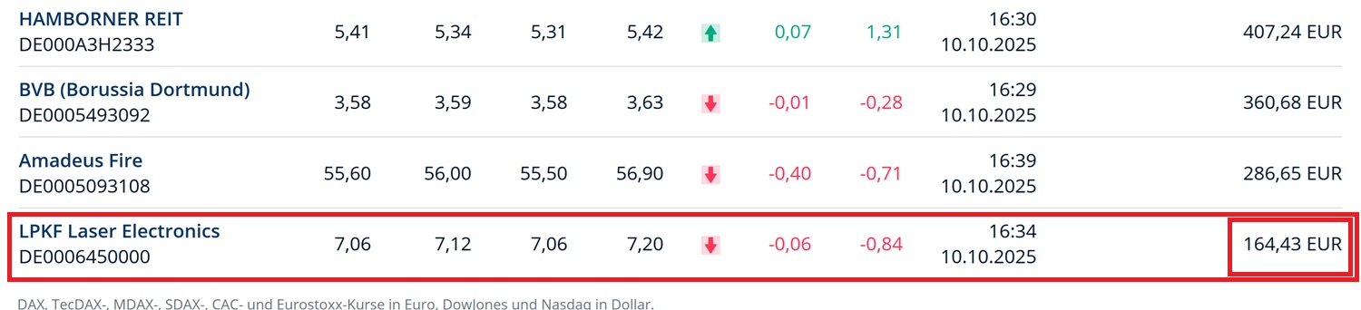 Die geringste MK im SDAX hat aktuell LPKF mit 164 Mio €
