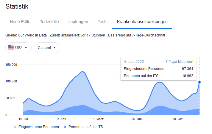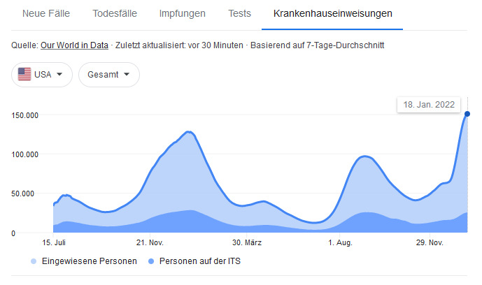 Selbst die Intensivstationen sind in den USA mit ~ 26.000 wieder "rekordverdächtig belegt".