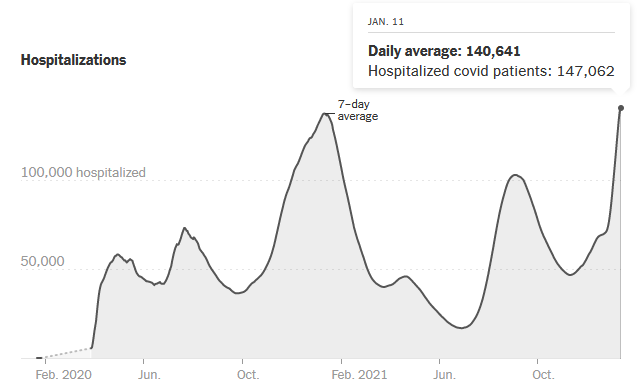 Bleiben die Infektionszahlen so hoch, dürften die Hospitalisierungen in den USA bereits in 2 Wochen neue Rekordwerte erreichen !!!