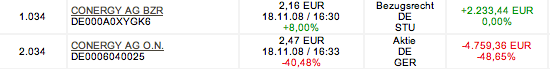 Ich rief bei Conergy erneut an um zu erfahren ob der Signierung weiter Läuft, NEIN. ES IST VORBEI AM : ES IST VORBEI AM 17.11.2008 zum Uhrzeit XETRA Schluss.